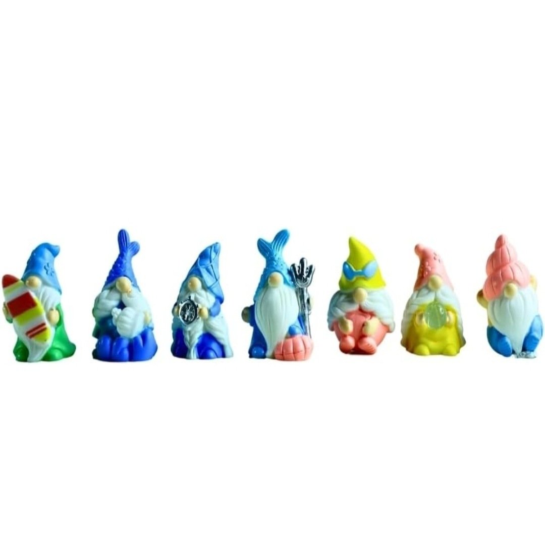 Bring playful summer vibes to your décor with the Beach Summer Gnomes Dwarf Set. This charming collection includes 7 unique pieces, each designed to add fun and character to beach-themed parties, garden setups, or cake top decorations.  it’s a delightful way to brighten up any occasion with whimsical charm.